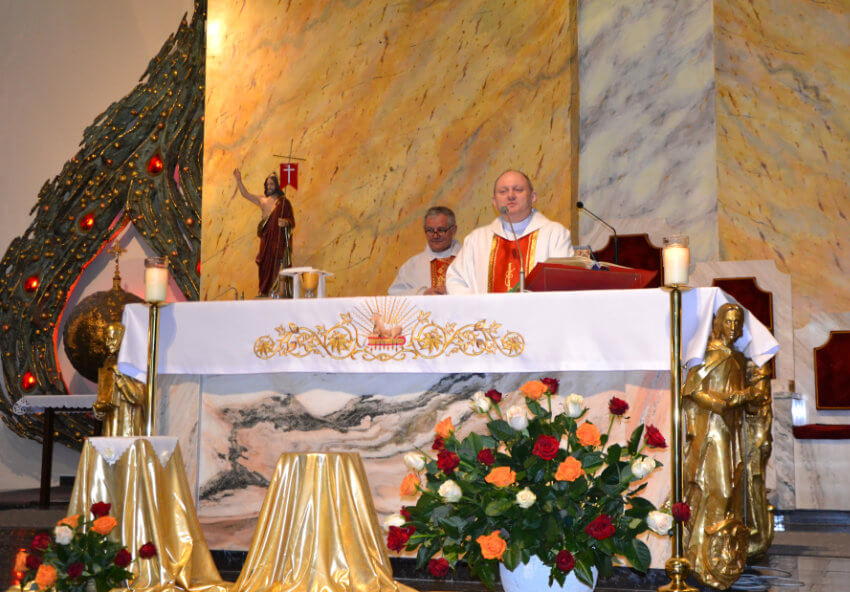 Msza św. podczas spotkania we Wrocławiu. Od lewej: o. Adam Kruczyński SVD, o. Maciej Józefczuk SVD, o. Hanson D’Souza SVD, o. Wiesław Dudar SVD (fot. Adam Józefczuk)