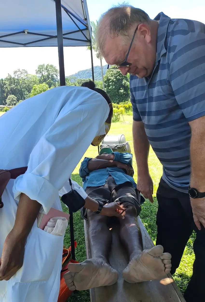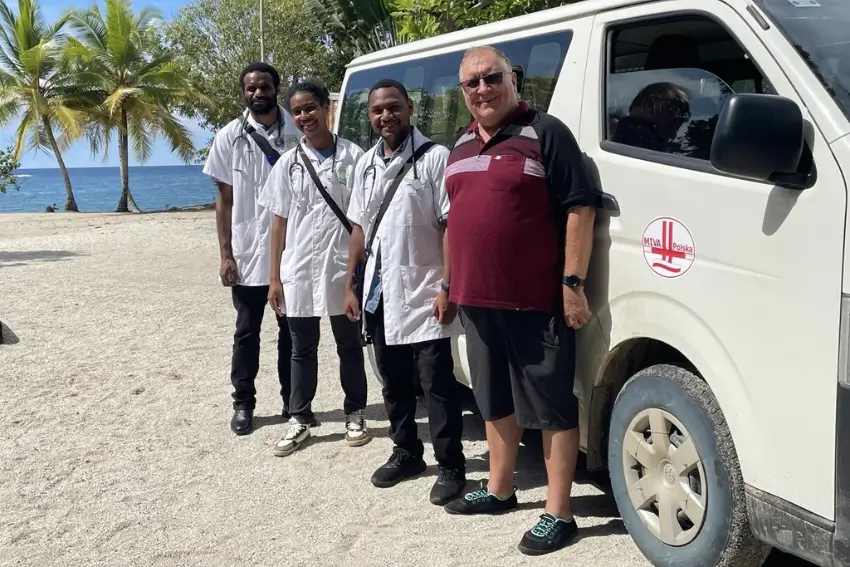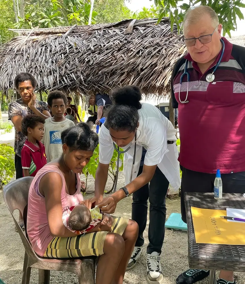 Ponadto organizujemy patrole medyczne do oddalonych wsi. W tym roku byłem ze studentami w Simbine, wsi oddalonej ok. 150km od Madang. Prowadzimy tam mały projekt rozwojowy i naukowy mający na celu poprawę wyżywienia małych dzieci i matek w ciąży. Przewlekłe niedożywienie, szczególnie niedobór białka jest częstym problemem w PNG. Skutkuje to nieprawidłowym rozwojem dzieci. Poza edukacją matek jak poprawić żywienie dzieci i rodziny, program wspiera finansowo prowadzenie gospodarczej hodowli kur. Poza projektem, ze studentami przebadaliśmy i udzieliliśmy porady ok. 20 chorym ze wsi.
